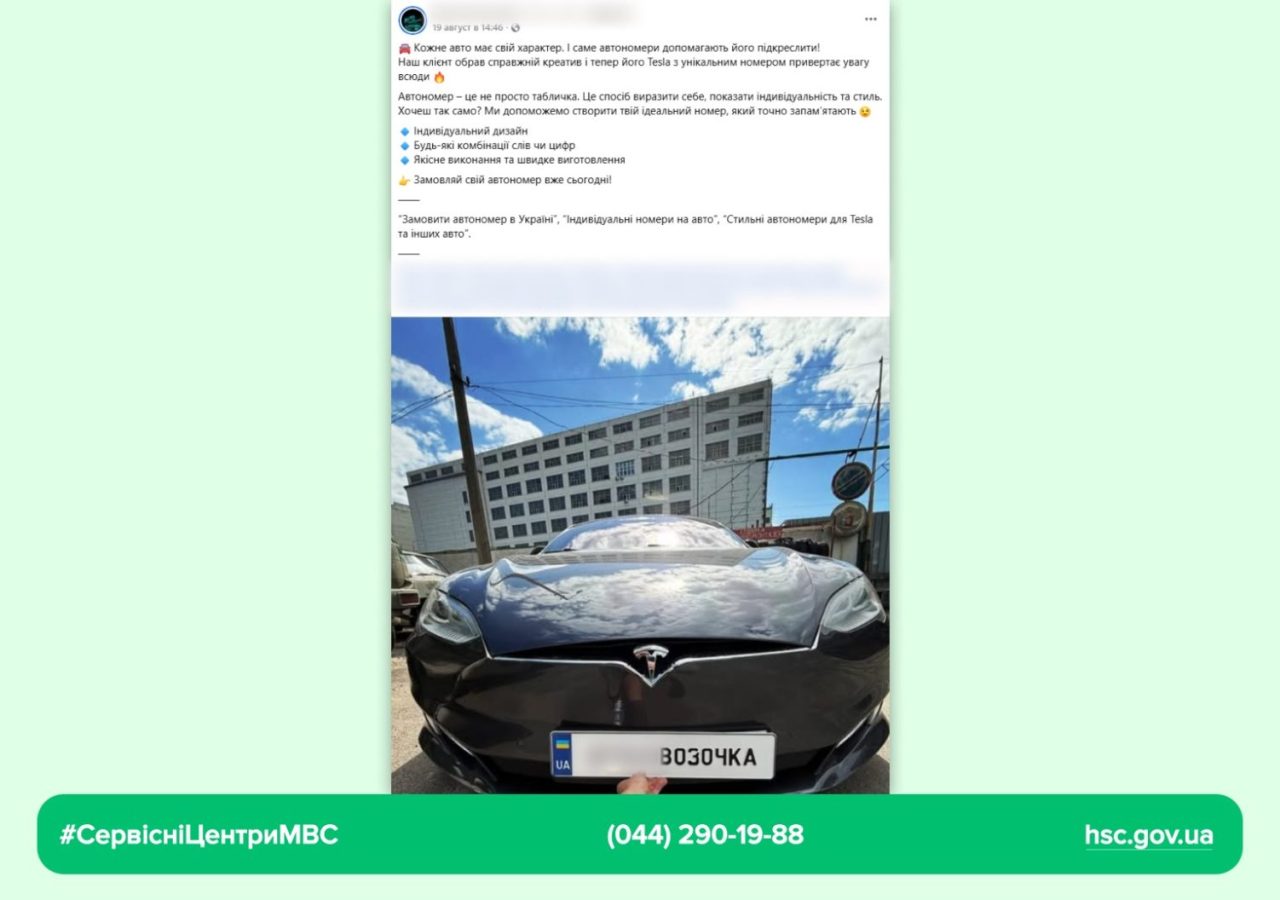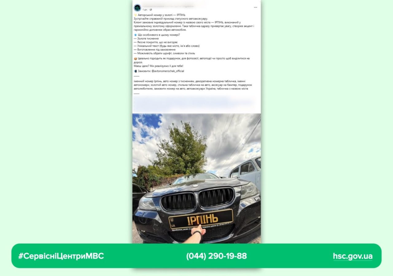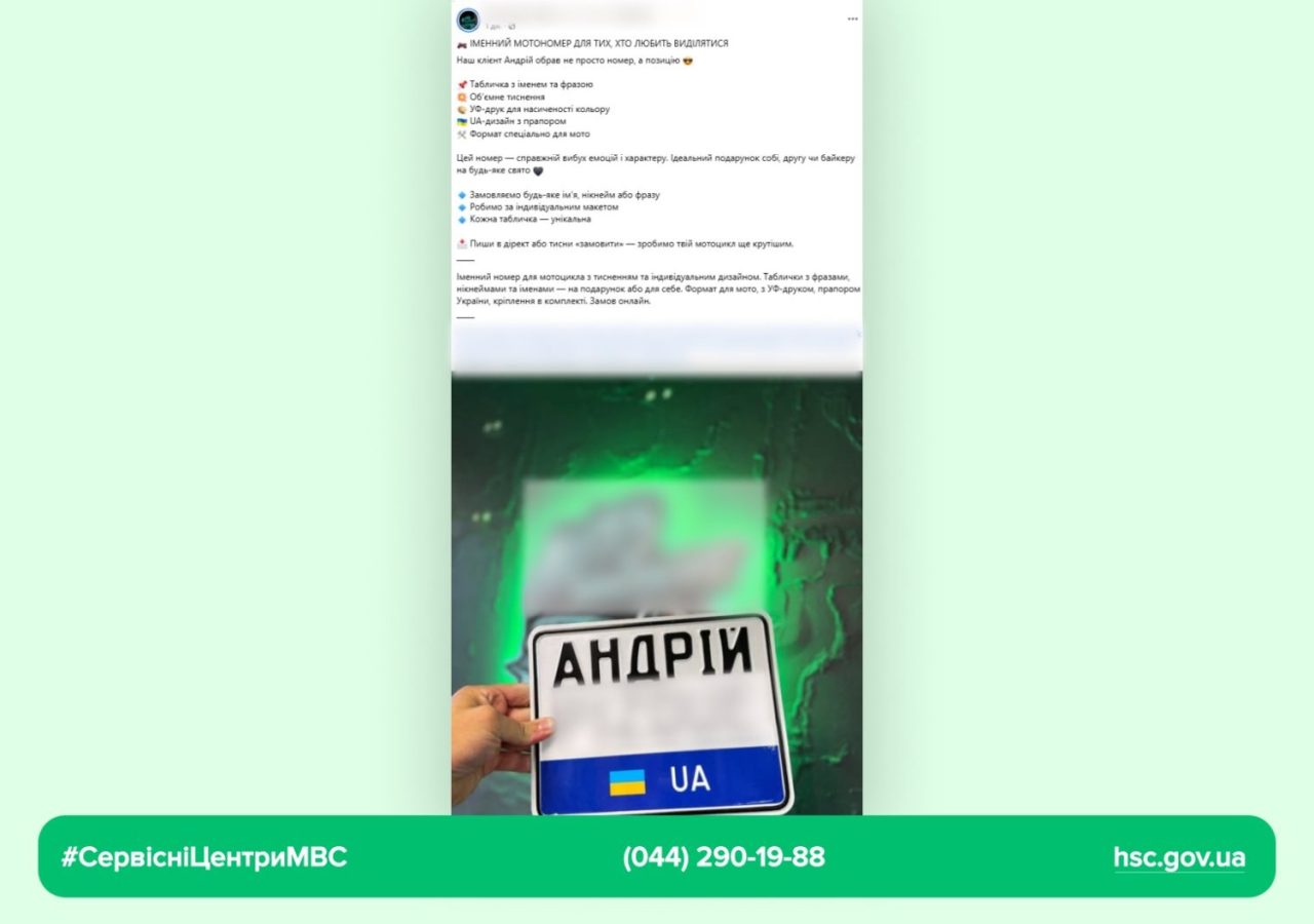 В соціальних мережах можна помітити різні оголошення, в яких пропонують послуги, пов’язані з виготовленням номерних знаків для транспортних засобів. Ширяться публікації на кшталт: «Авторський номер у золоті», «Індивідуальні таблички з будь-яким написом» включаючи будь-який набір цифро-буквених комбінацій, написів, образливих та ненормативних слів.
